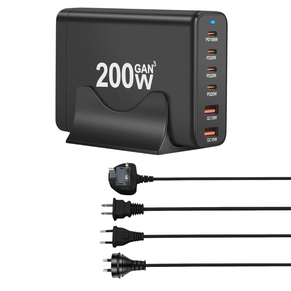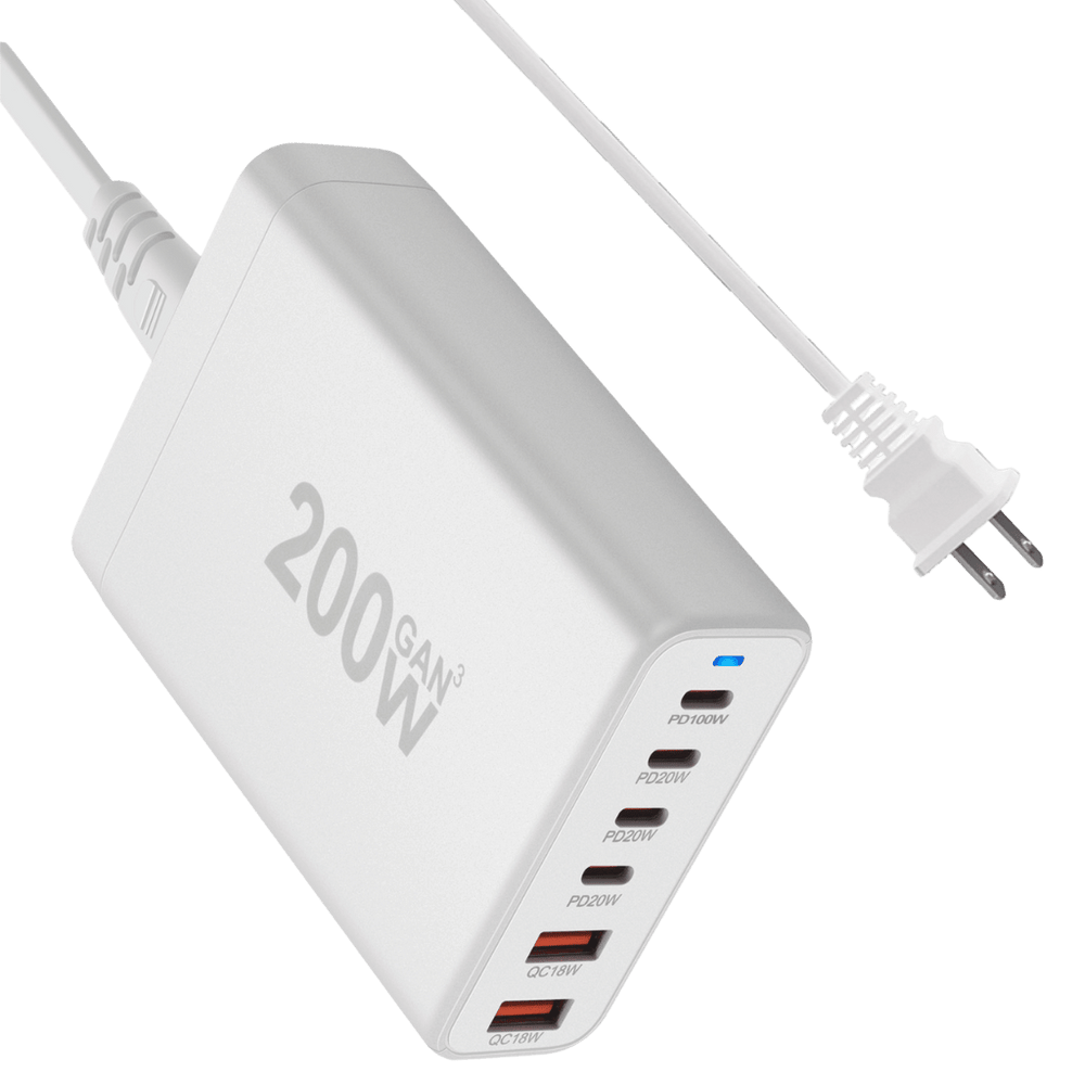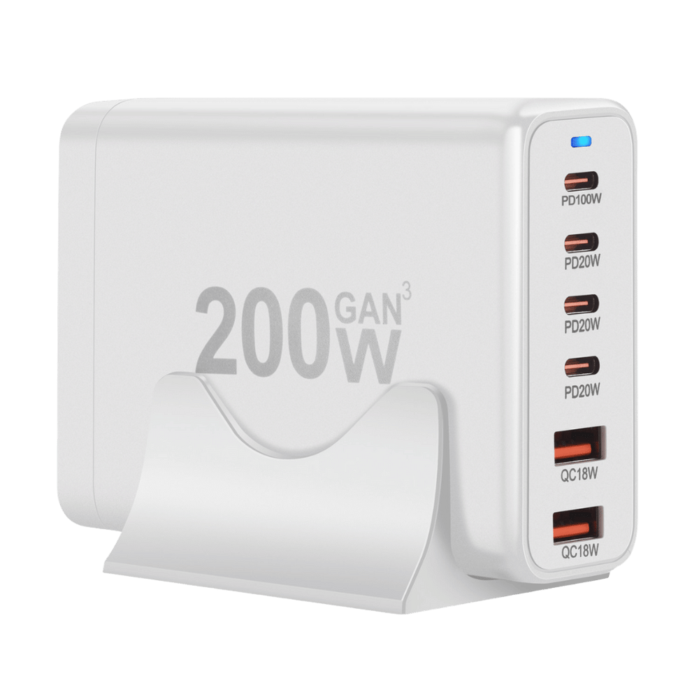 Delivers a robust 200W total output, capable of quickly charging everything from smartphones to power-hungry laptops.