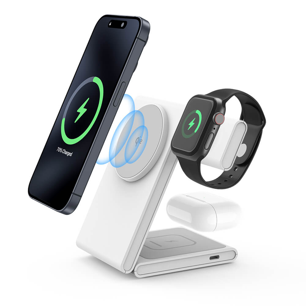 Power your iPhone, Apple Watch, and AirPods all at once with a sleek, Qi2-certified wireless charging station.