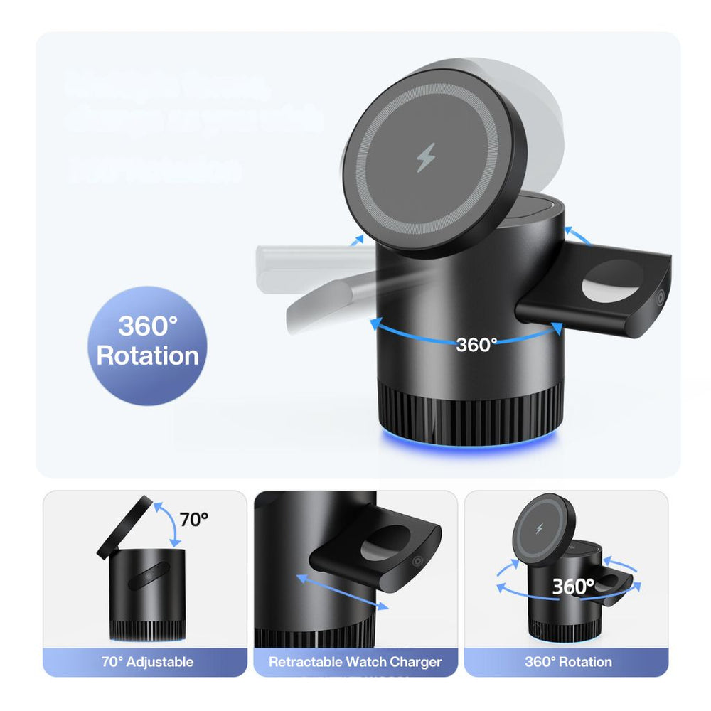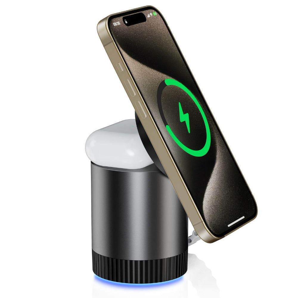 Power your phone, earbuds, and smartwatch simultaneously with one compact station.