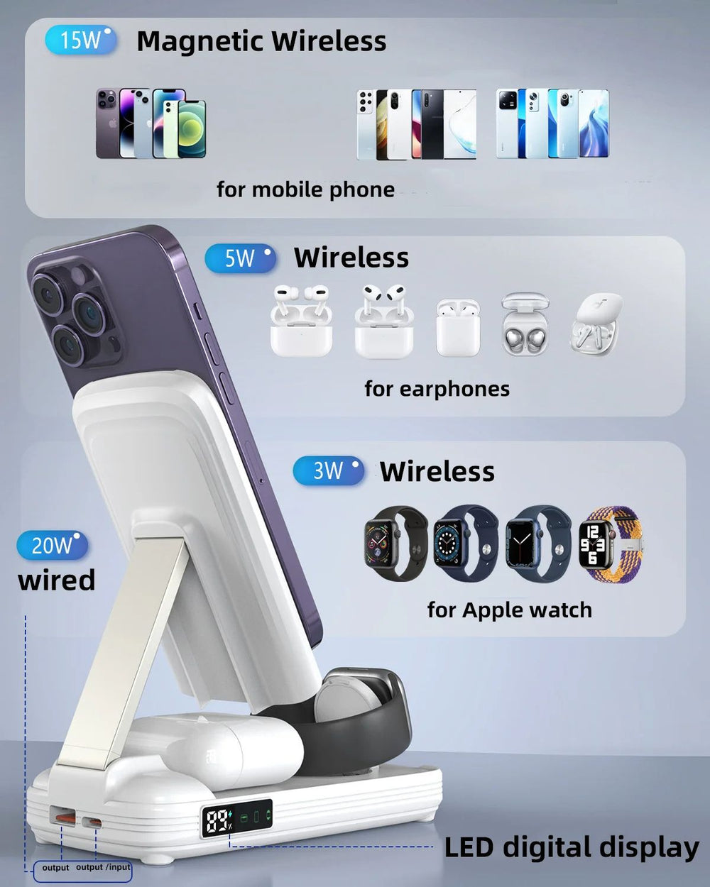 Charge your iPhone, Apple Watch, and AirPods simultaneously with ease.