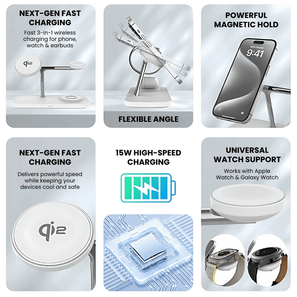 Provides up to 15W wireless charging for iPhone while keeping your watch and earbuds powered.