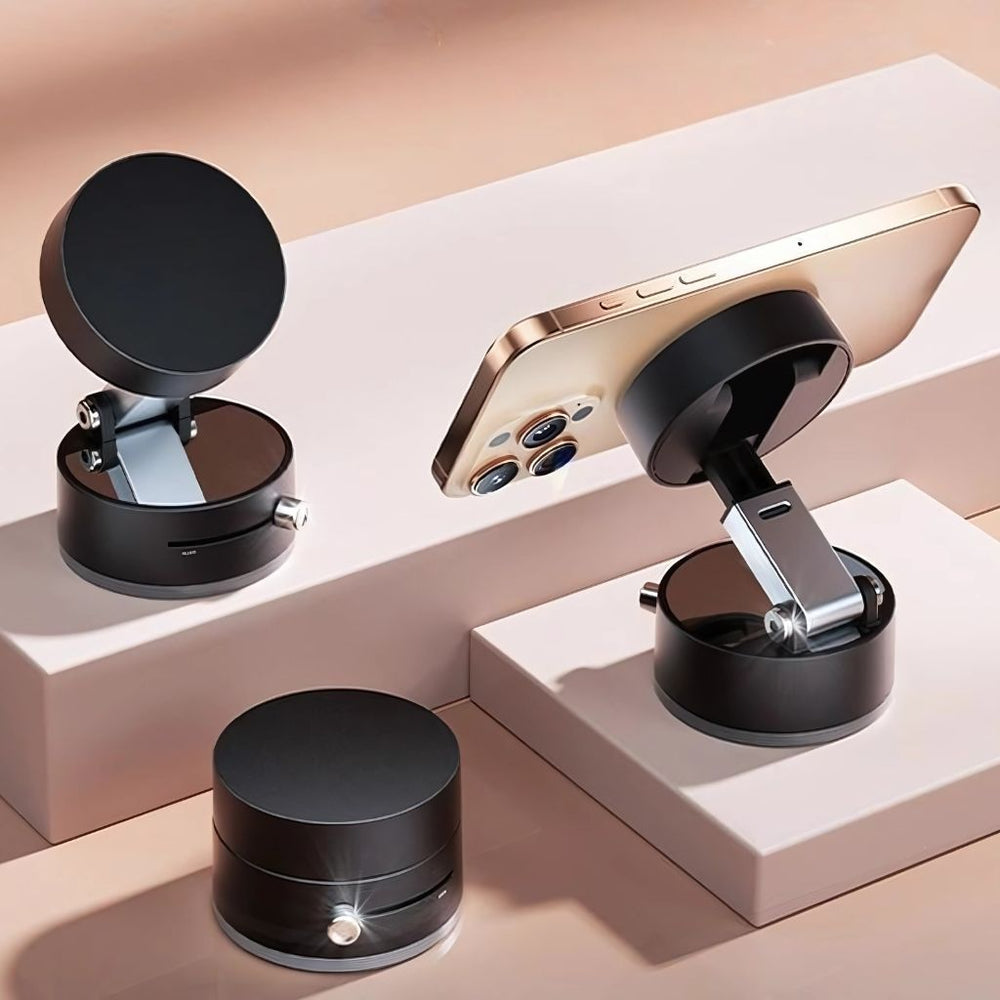 NOVAGEAR MagMount Grip combines 20x N52 magnets with vacuum suction, letting you stick your phone securely to mirrors, desks, tiles, glass, or any flat surface. Fully foldable and 360° rotatable — perfect for calls, workouts, navigation, or content creation.