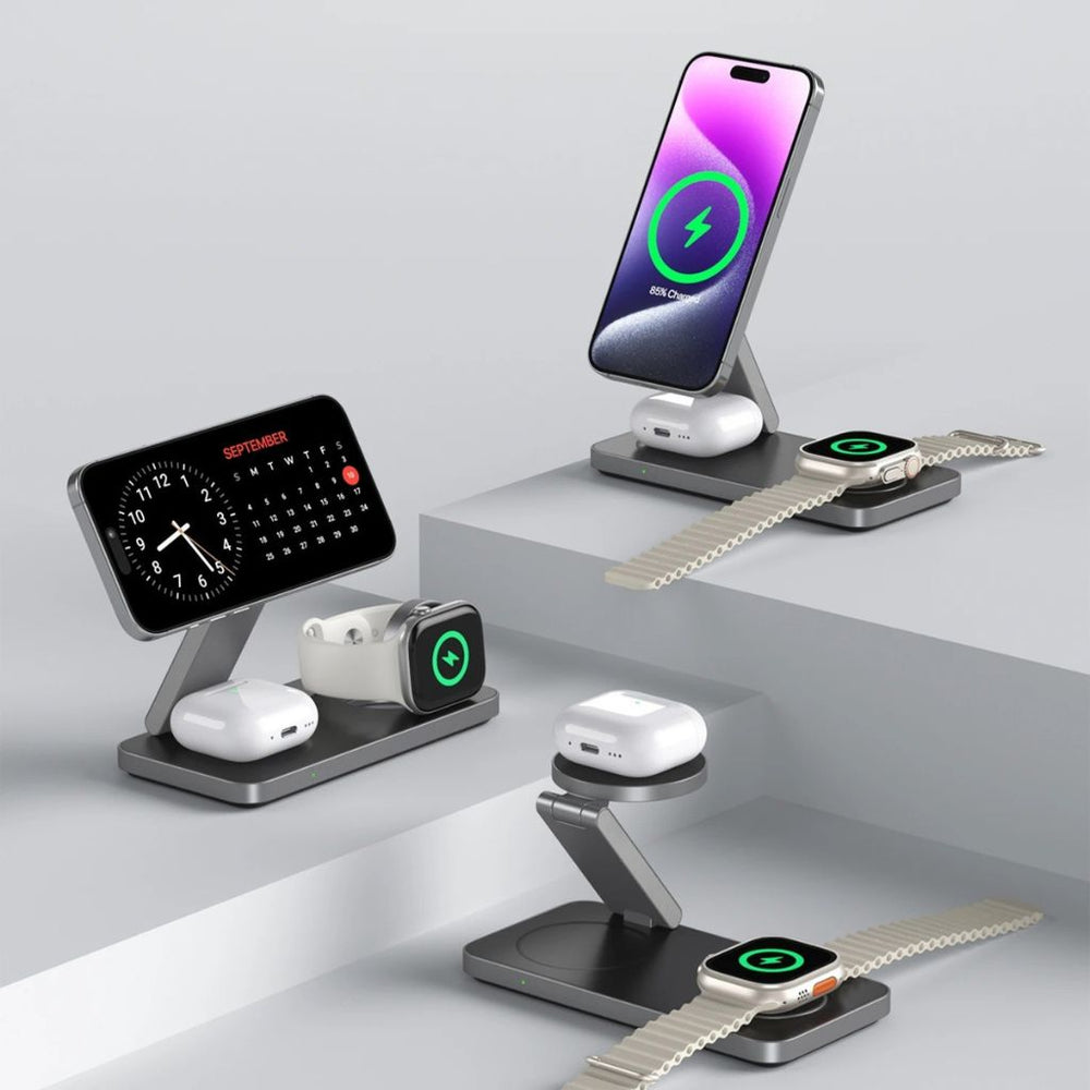 Charge iPhone, Apple Watch, and AirPods simultaneously β one sleek station replaces three chargers.