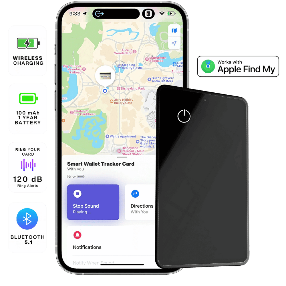 Seamlessly integrates with the Apple Find My app — just like an AirTag, but thinner and wallet-ready.